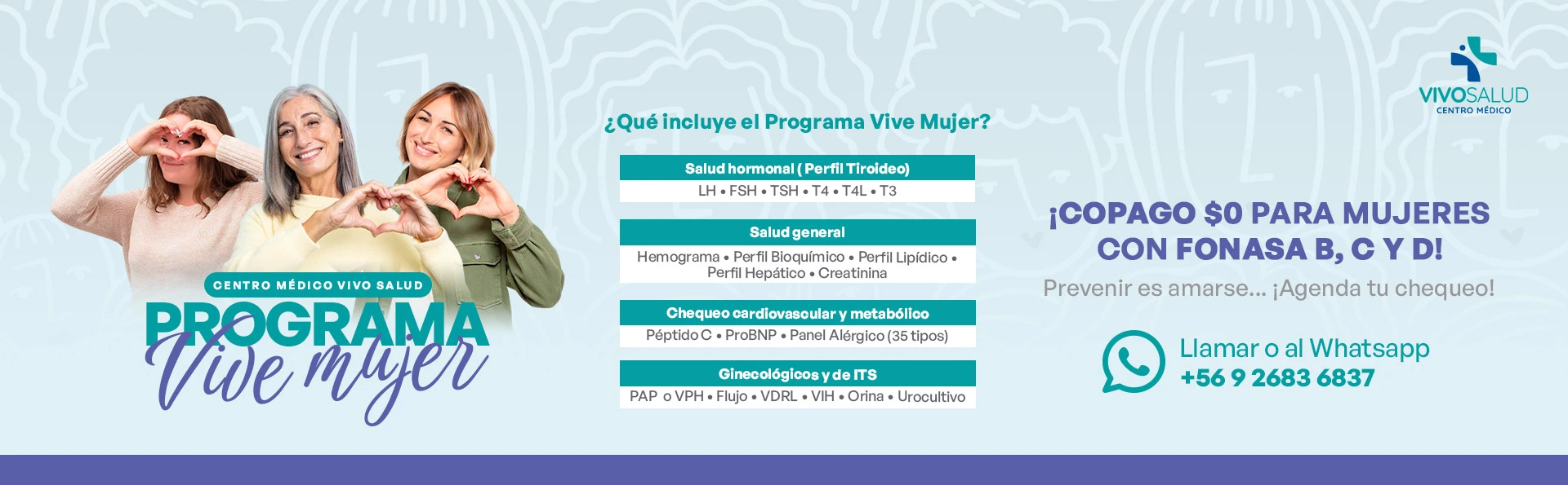 Nuestras especialidades Queremos que tu experiencia médica sea simple y tranquila. En Vivo Salud te acompañamos en cada paso para cuidar tu salud y la de tu familia. Exámenes de Laboratorio Toma de muestras rápida y segura Somos Fonasa Nivel 1. Resultados confiables y oportunos. Agenda tu hora Psicología Atención para adultos, niños y adolescentes: ansiedad, estrés, duelo y apoyo emocional en un espacio seguro. Agenda tu hora Ecografías Ecografías ginecológicas, obstétricas y generales con equipos de alta resolución y atención cercana. Agenda tu hora Test Ados 2 Un espacio seguro para comprender, acompañar y sanar. Agenda tu hora Blog Vivo Salud No ignores ese bulto: señales de alerta del cáncer de mama Detectar un bulto en la mama suele ser una experiencia...Leer más noviembre 5, 2025 Hablemos de tu salud Estamos disponibles para orientarte y coordinar exámenes, ecografías o consultas. Déjanos tus datos y te contactaremos. Realiza tu consulta aquí